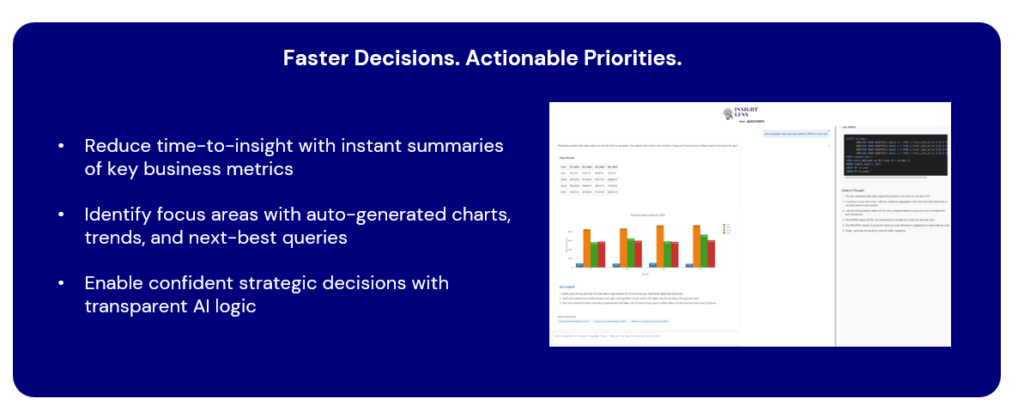 business users spend excessive time hunting for insights – time that could be better spent on strategic decision-making and action planning.